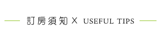 | ● | 訂房延期可延三個月,請於10天前告知例、假日需補足差額。 |